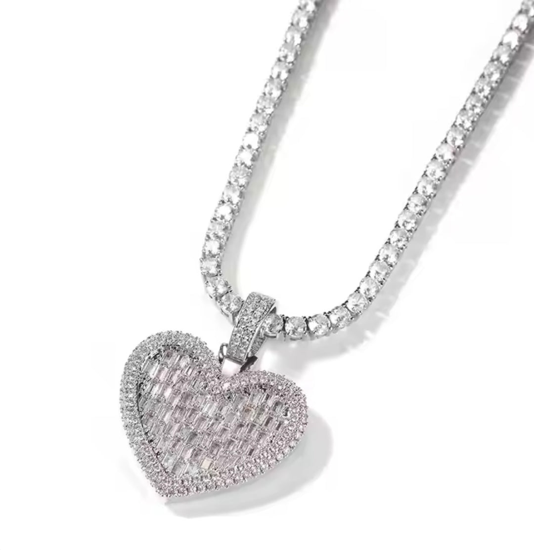 Icy Baguette Heart Tennis Necklace